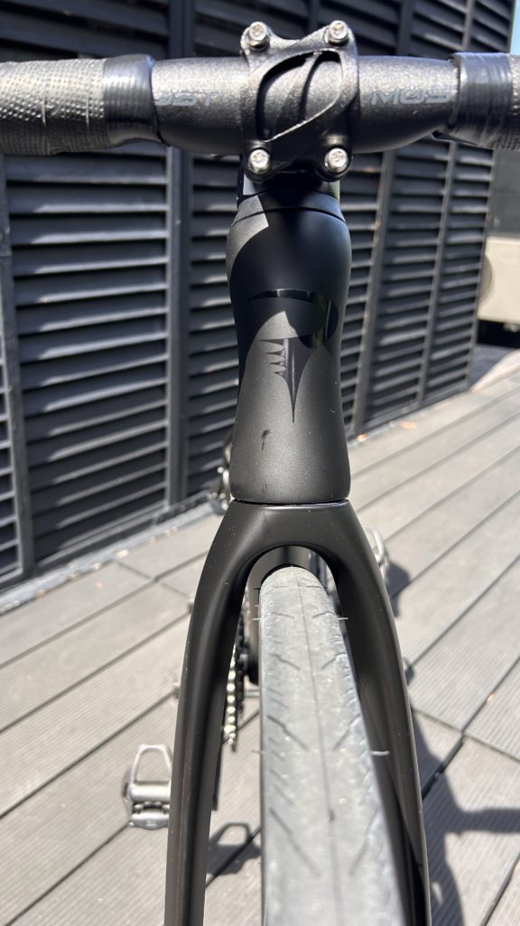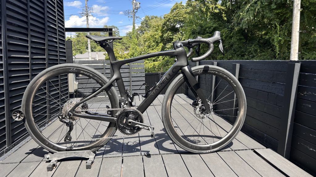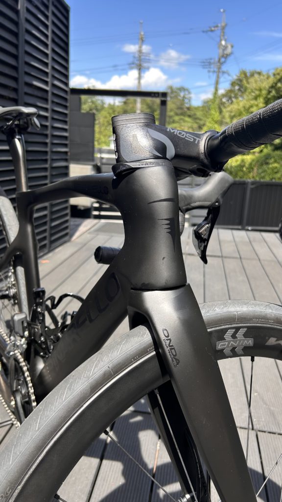 ポジション面ではリムブレーキからディスクブレーキに乗り換えということで、ポジションをミリ単位まで完全コピーしてから、ペダルを+4mmシャフトのワイドスタンスに変更。サドル高を-3mm、ハンドル高+8mm。このフレームを進ませるにはこのポジション!という所を何時間もかけて、ポジション出ししてあります。