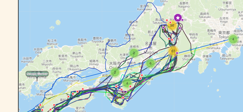 鹿児島-長野@松本 総距離2300kmを15日間で走るイベントが開催されています。詳しくは分からないのですが、決められたチェックポイントはあるようですが、ルートは自由だと参加者の方から教えてもらいました。