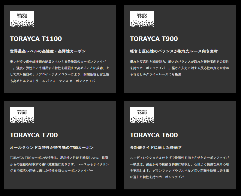 ということは素材でいうとT900あたりがいいのかもと想像しています。