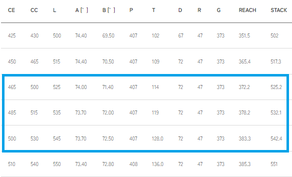 例えば身長170㎝の私は他社であればSサイズ1択となりますが、ピナレロだと「465」「485」「500」から選択できます。