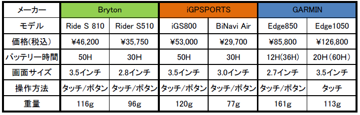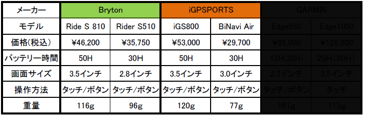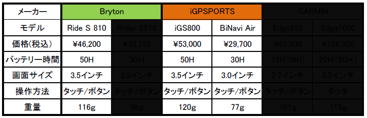 細かい機能を検索しても自分が使いたい機能、速度や距離、パワー表示などの「サイコン機能」と地図表示の「ナビ機能」での価値を見出せませんでしたので、、まずGARMINはリストから外しました。