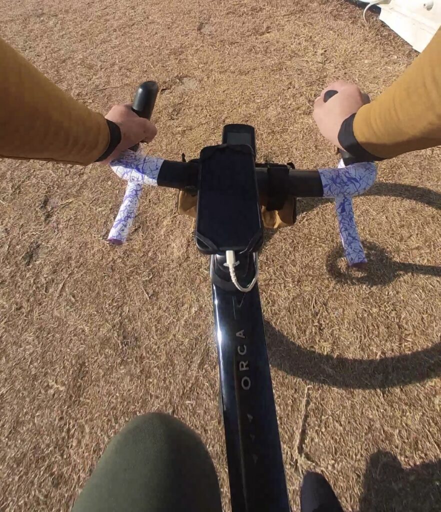 浜名湖ライドに行った際、スマートフォンをハンドルにつけ、Ride with us という自転車ナビを使って走行したのですが、スマホのバッテリー残量50%でスタートしたこともあり、バッテリーがみるみるうちに減っていったので、ハンドルに取り付けたバッグの中に入れたチャージャーから給電しながら走るも、ナビを使い続けている状態では充電が追い付かず、10%を切る事態になってしまいました。