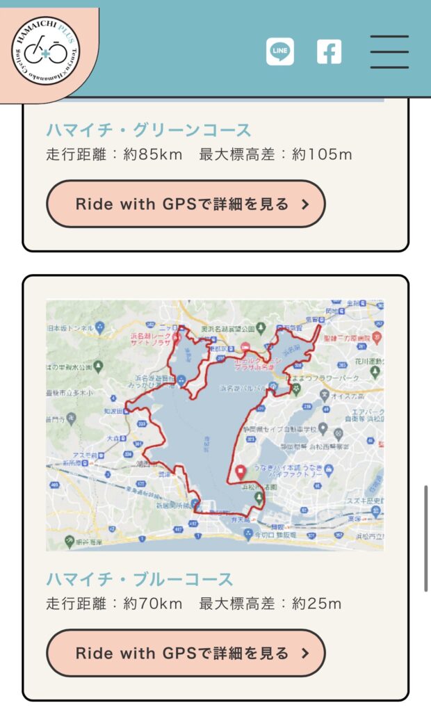あと浜名湖ライドの地図データは、ハマイチのサイトに載っていた中から選んでダウンロードしました。