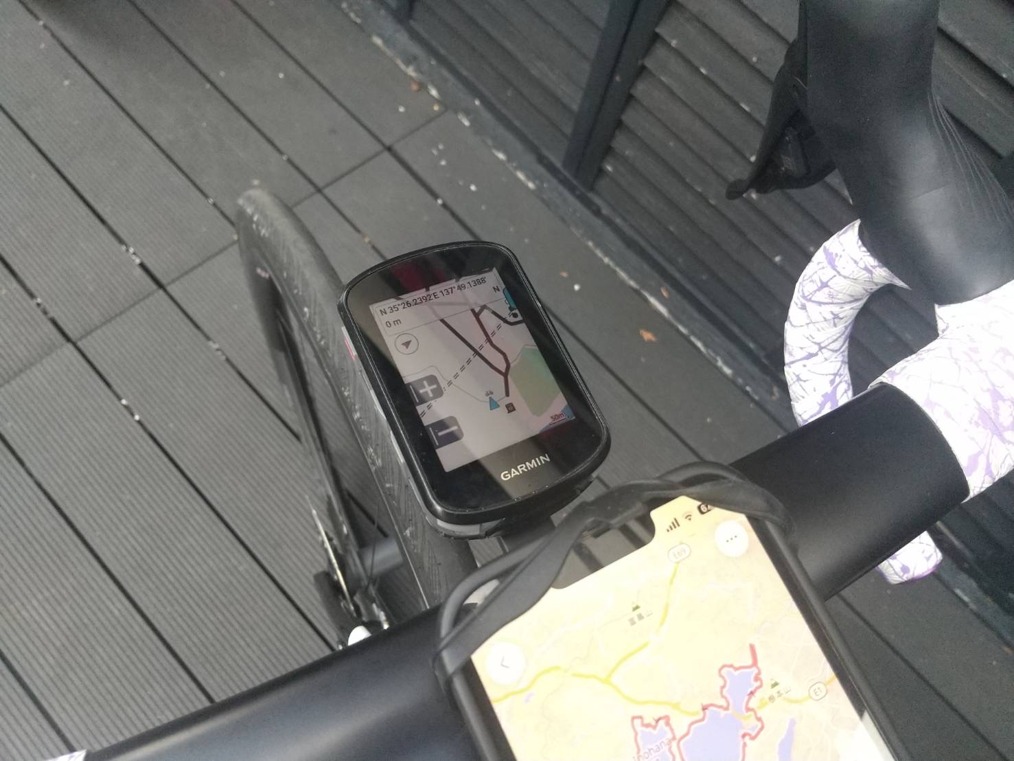 ライド後半は他のメンバーの方にライドリーダーを変わって頂き、先導して頂きました。結論としては、知らない土地を走る時はナビは必要ですが、スマホではなくサイクルコンピューターのナビ機能を使う必要があると気づきました。スマホ以外にもガーミンのエッヂ540にもルートを入れ表示していたのですが、画面が小さすぎて、細かい裏道をくねくね行くような場面では、目が追いきれませんでした。