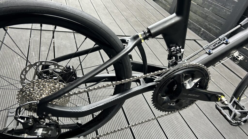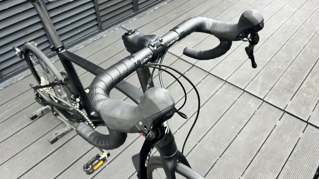 走りはロードバイクそのもので、びっくりする走行性能です。フレームの設計ジオメトリーが良く、しっかり進むのだと思います。