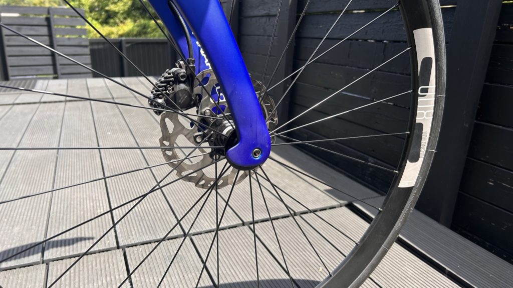 試乗した印象は、フレームがしなやかで乗りやすさがあります。急な加速や俊敏性はさずがに上位グレードより劣りますが、硬すぎないのが足にこず長い距離も走れる感じです。ネックは完成車重量は重いことです。予算に余裕があれば、是非ホイールを軽量化してあげると、かなり走るようになります!