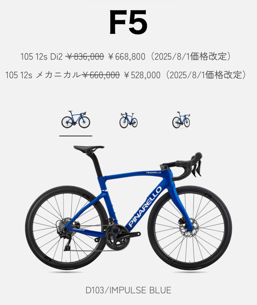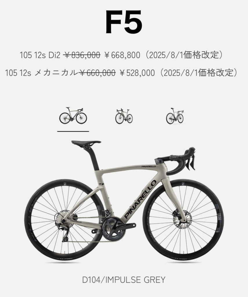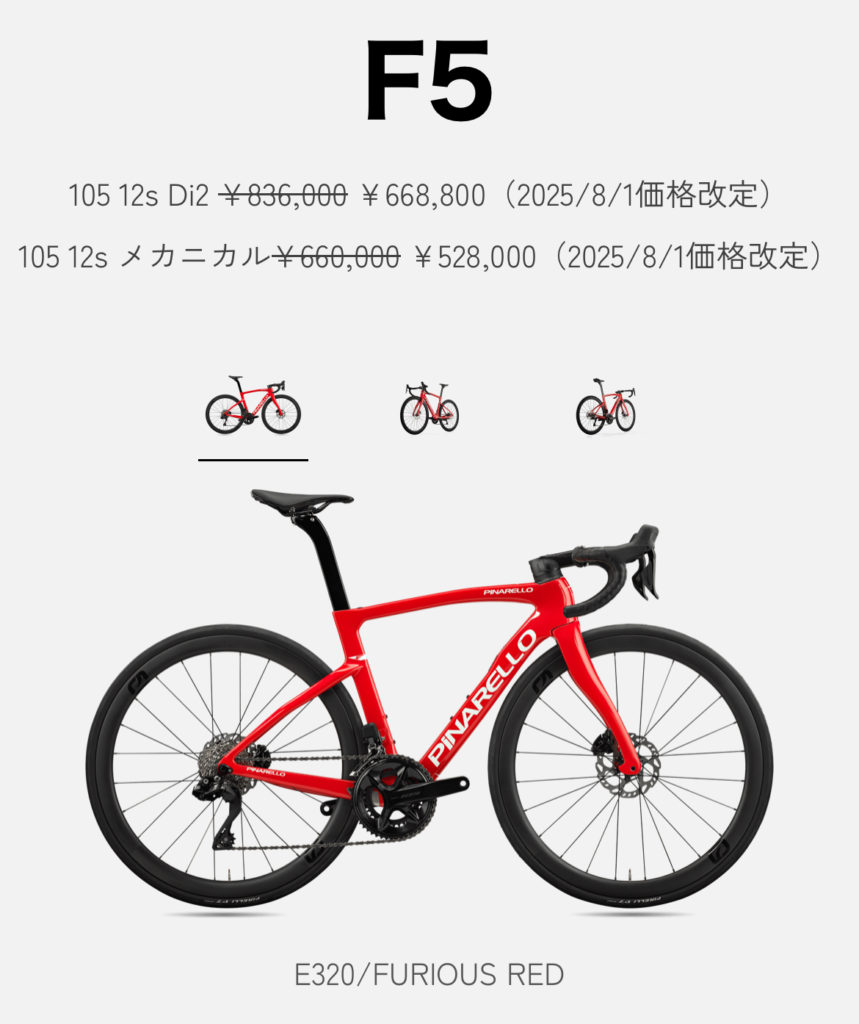 ピナレロのコンペティションロードバイクのベースグレード「F5」