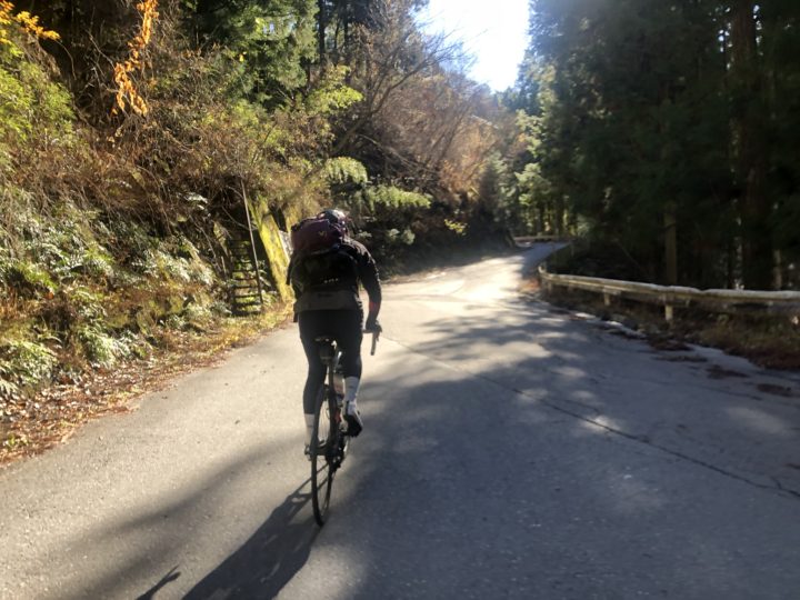 ライドメンバーも冬物ジャージの袖をめくりあげ頑張って登り続けます。