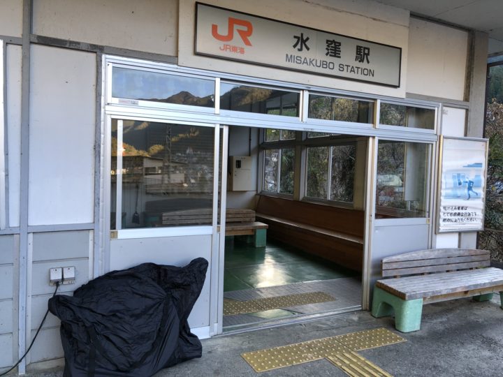 水窪駅に到着、ここで自転車をばらし輪行します。