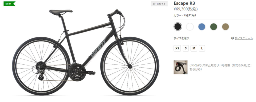 スポーツバイクにはXS~Lサイズまで複数サイズがあります。